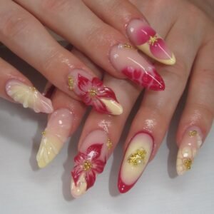 A gel-like nail polish applied as an overlay on natural nails or short extensions, lasts up to 3–4 weeks.